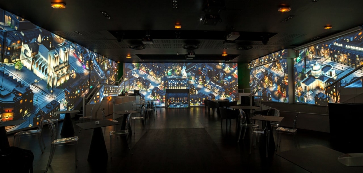 Les films peuvent être projetés sur tous les murs, et le matériel utilisé est high-tech.